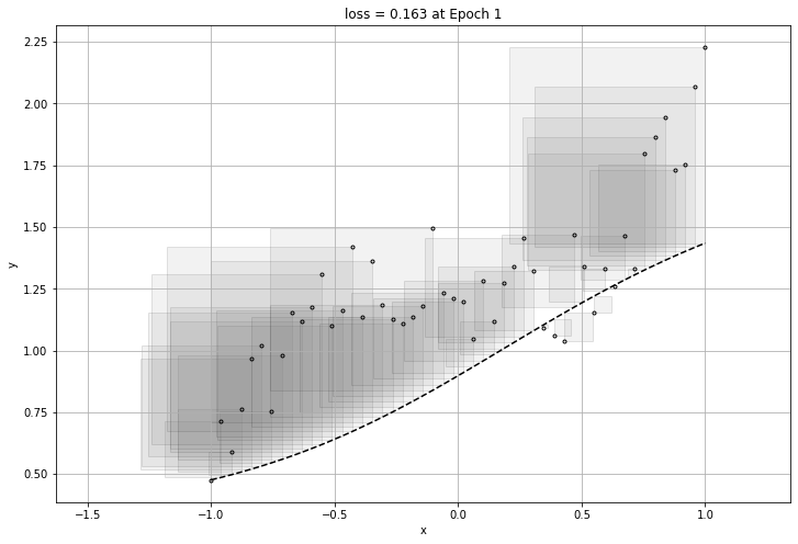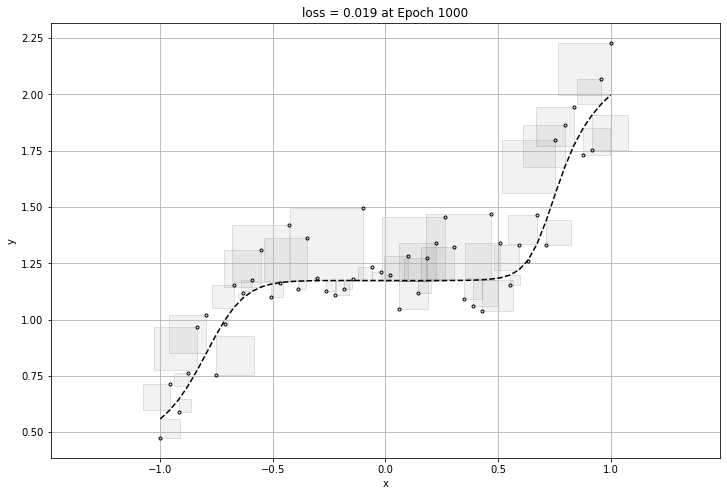 plt.title("loss = {:1.3f} at Epoch {}".format(final_loss, MaxEpochs))