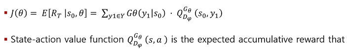 - 직접적인 gradient policy update에 의한 생성기의 차이 문제를 강화 학습 stochastic policy에 모델링하였습니다.