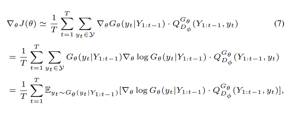 - 강화 학습 reward signal은 complete sequence로 판단되는 GAN으로부터 나오고 Monte Carlo search를 이용해 즉각적인 state action이 나옵니다.