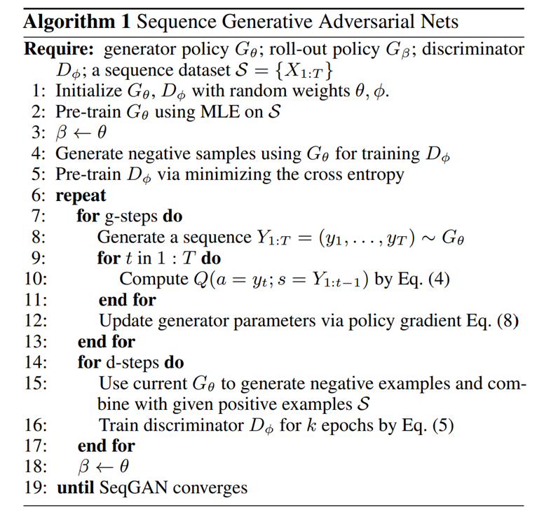 이는 SeqGAN이 converge 할 때까지 반복합니다.